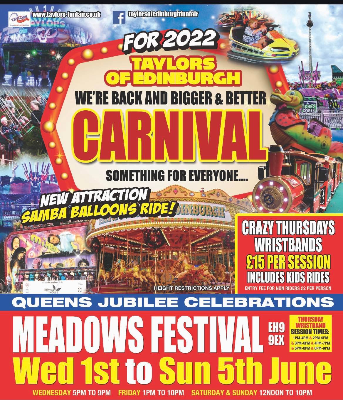 | 1st June | 5th June | Edinburgh | The Meadows | Taylors of Edinburgh | EH9 9EX | Poster |
