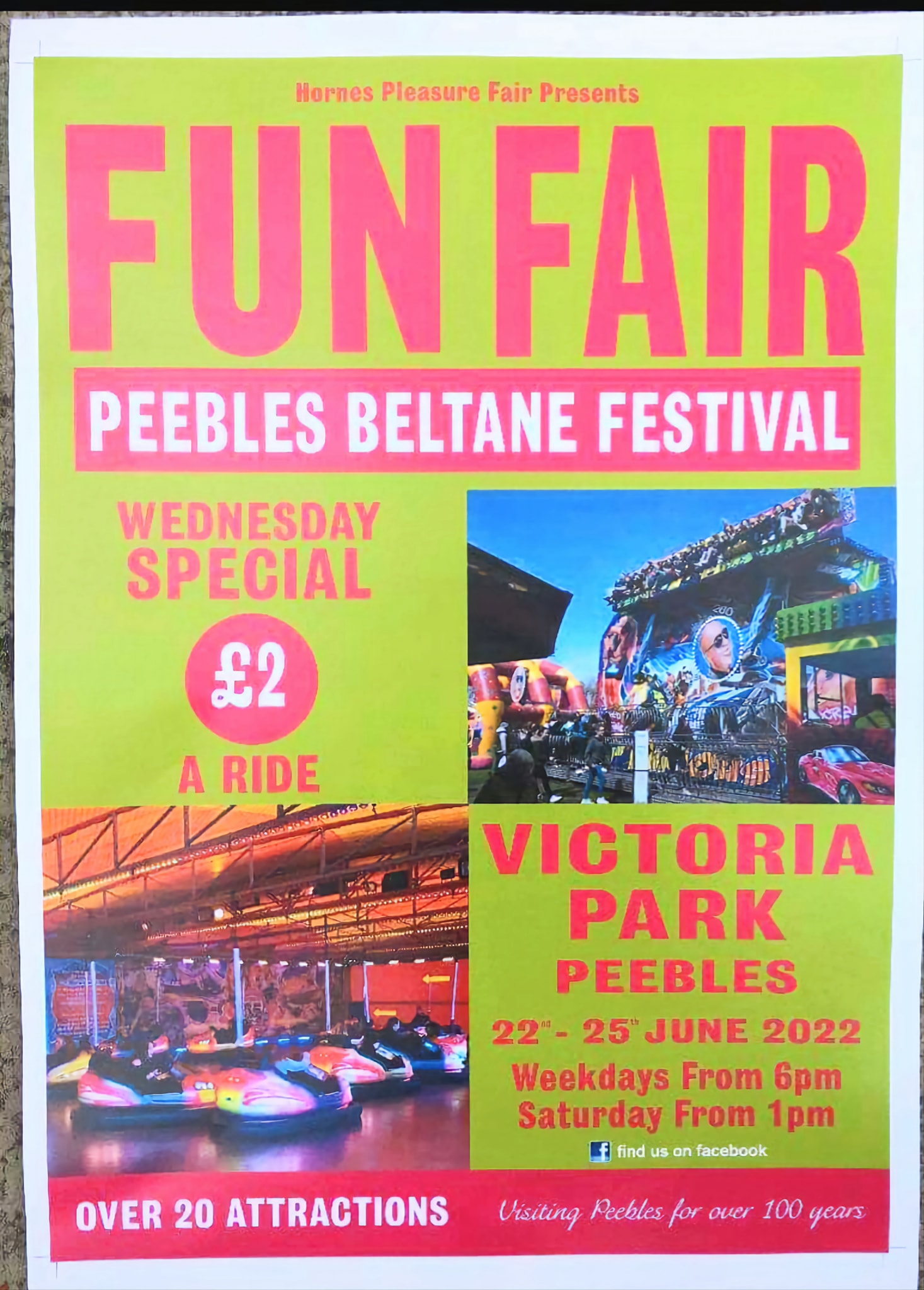 | 22nd June | 25th June | Peebles | Victoria Park | Hornes | EH45 9BH | Poster |