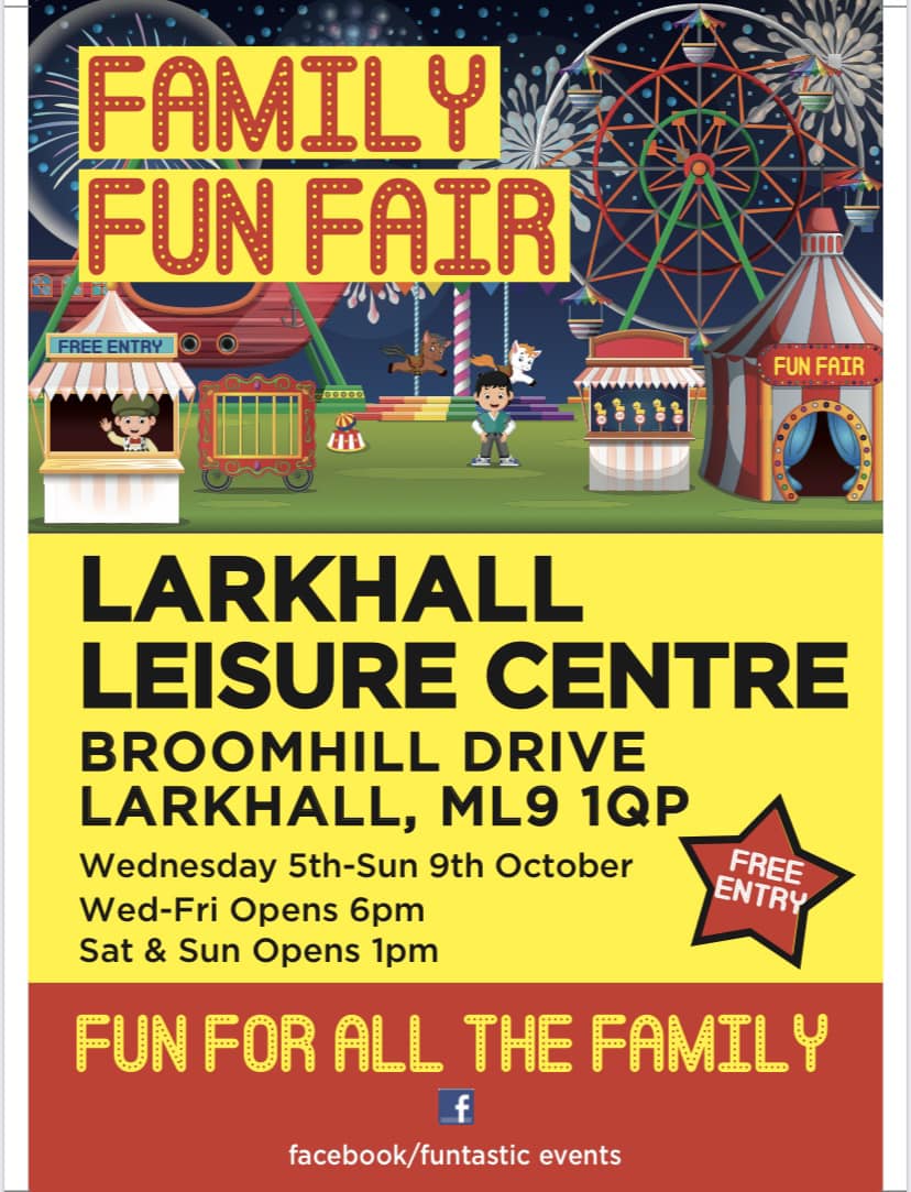 | 5th October | 9th October | Larkhall | Community Centre | Funtastic Events | ML9 1QP | Poster |