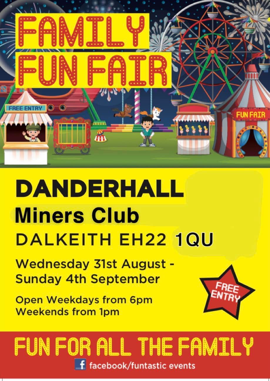 | 31st August | 4th September | Danderhall | Miners Club | Funtastic Events | EH22 1QU | Poster |
