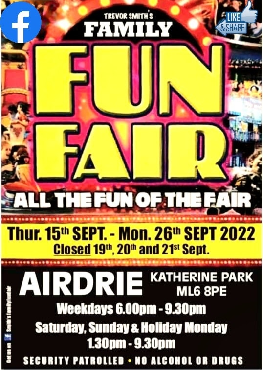 | 22nd September | 26th September | Airdrie | Katherine Park | Trevor Smith | ML6 8PE | Poster |