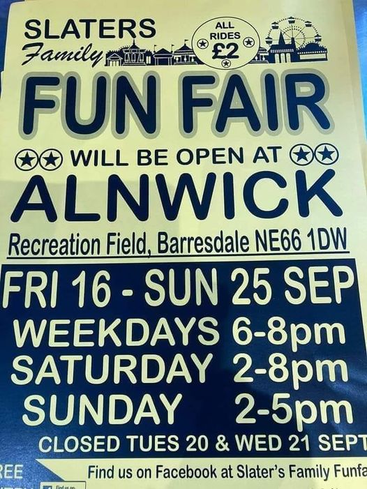 | 16th September | 25th September | Alnwick | Recreational Field | Jimmy Slater | NE66 1DW | Poster |