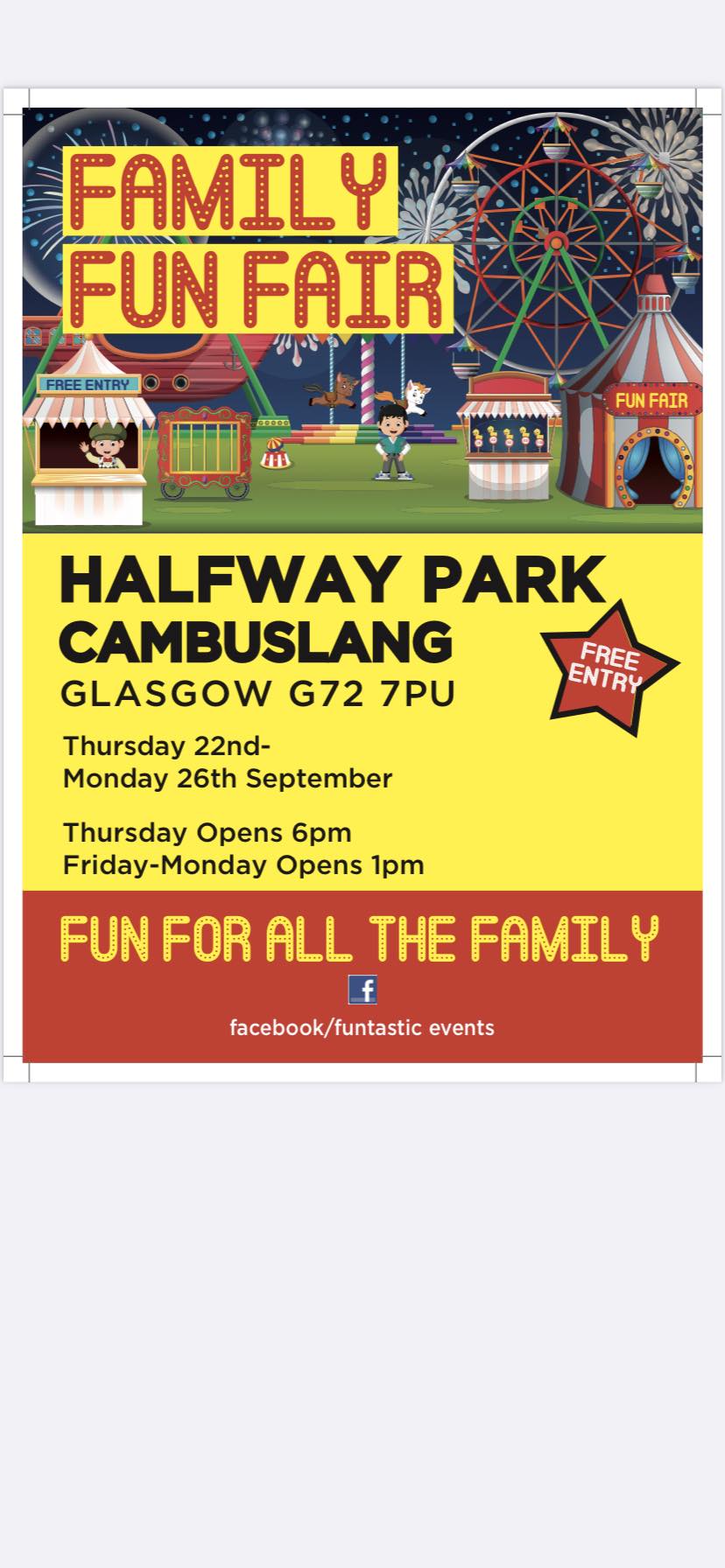 | 22nd September | 26th September | Cambuslang | Halfway Park | Funtastic Events | G72 7PU | Poster |