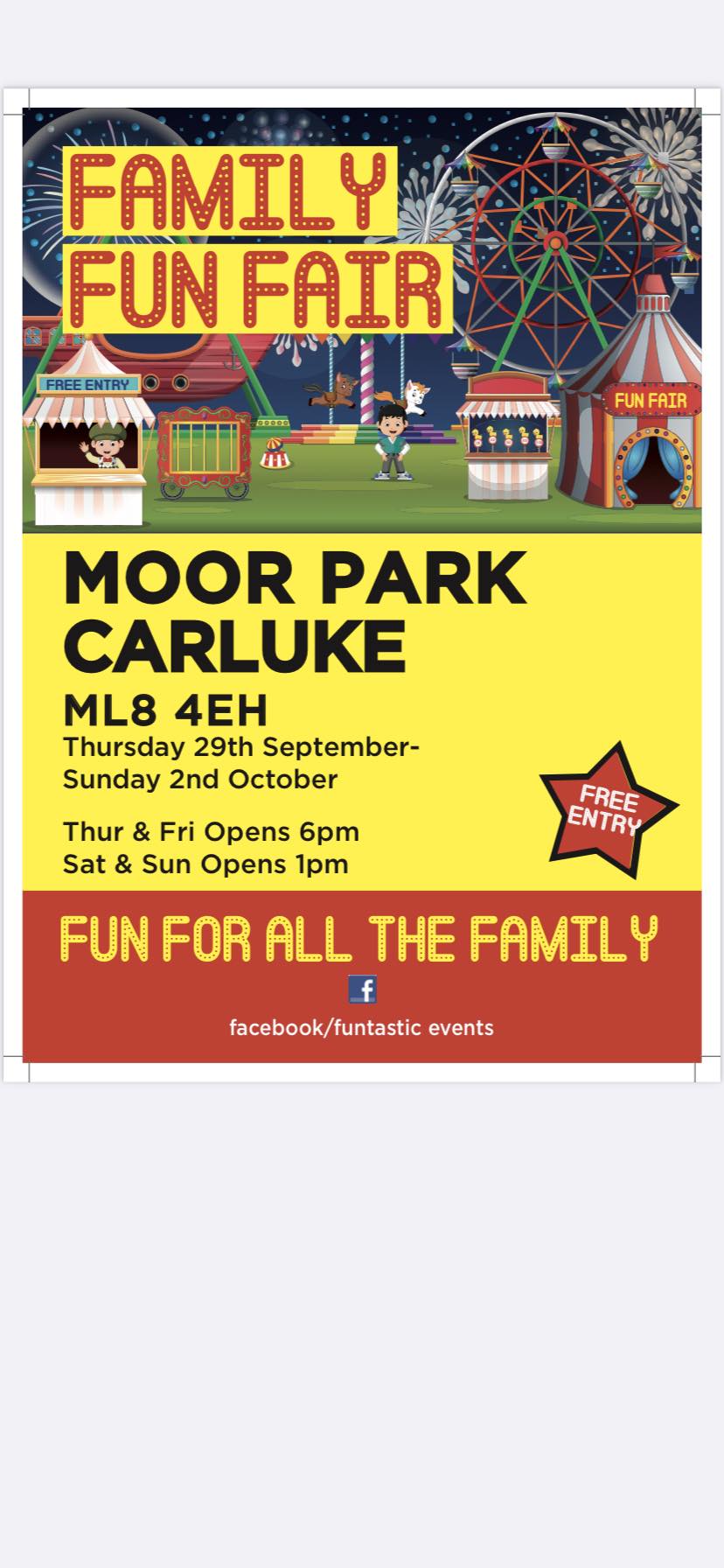 | 29th September | 2nd October | Carluke | Moor Park | Funtastic Events | ML8 4EH | Poster |