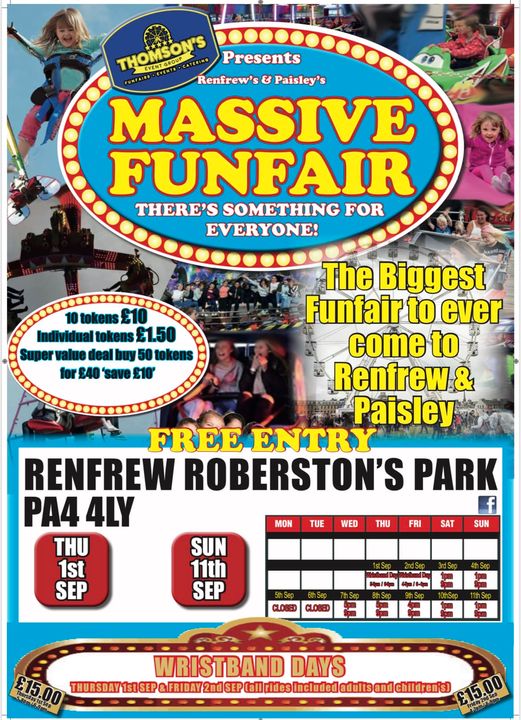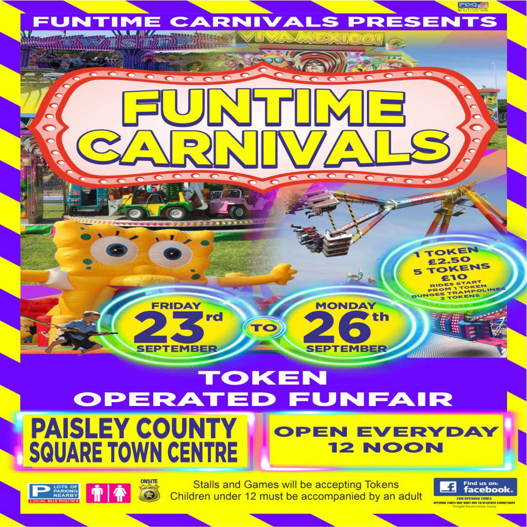 | 23rd September | 26th September | Paisley | Town Centre | Funtime Carnivals | ?? | Poster |