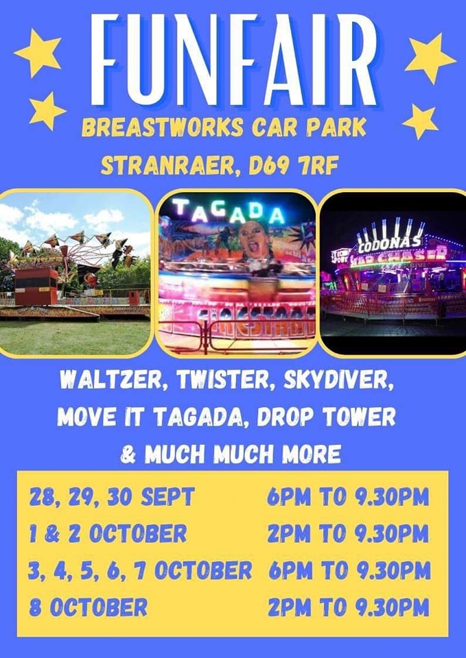 | 28th September | 8th October | Stranraer | Breastworks Car Park | Whites | D69 7RF | Poster |