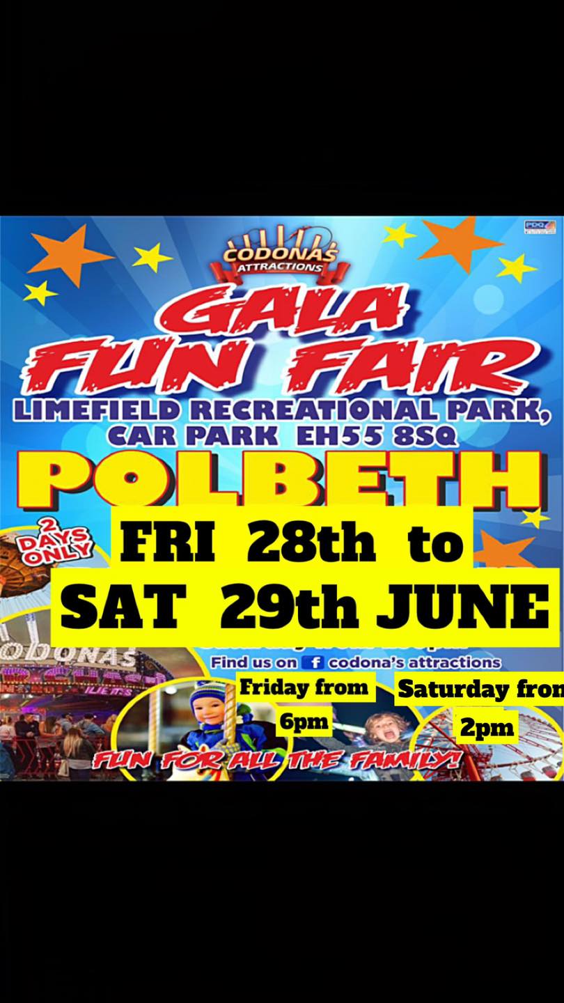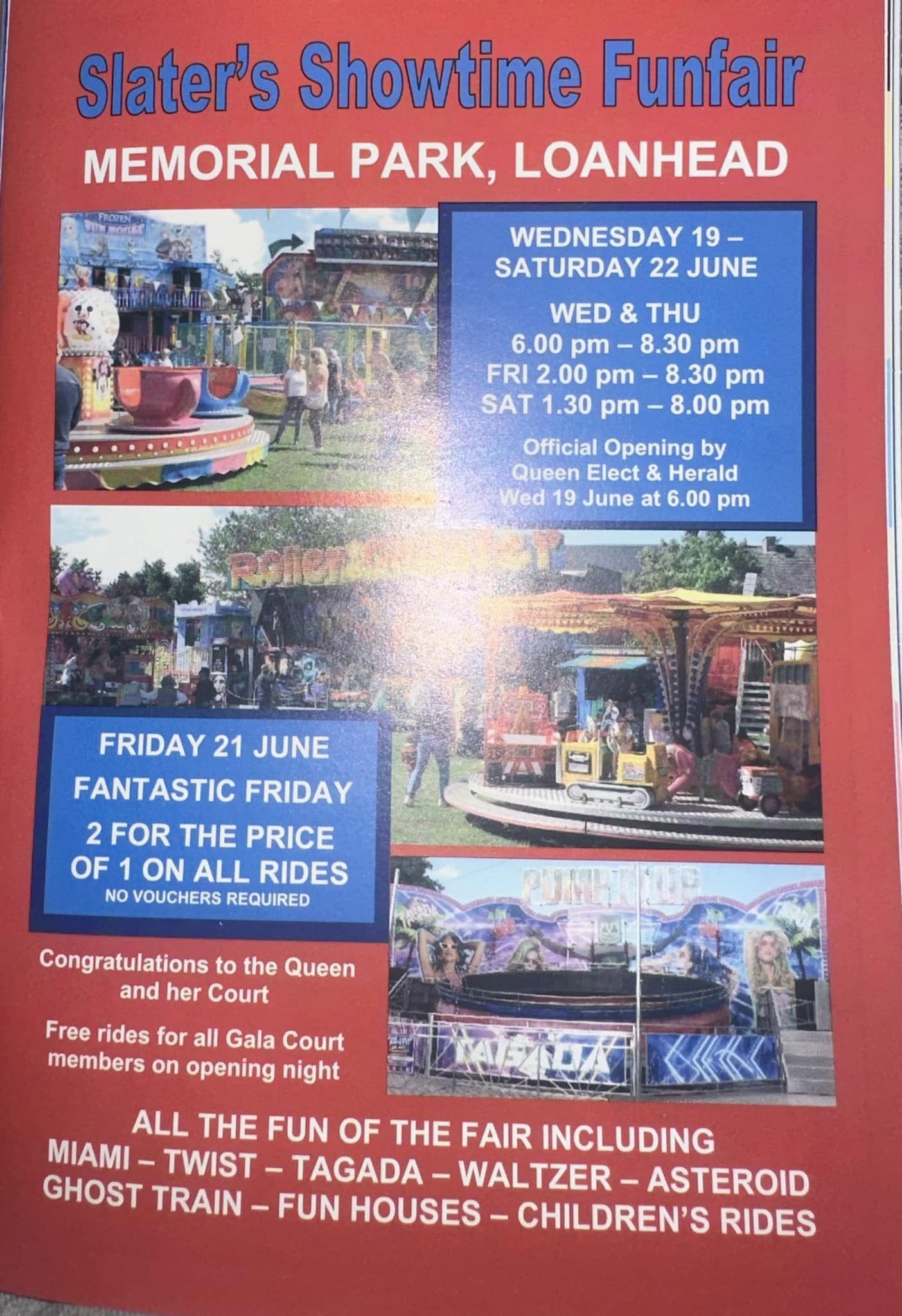 | 19th June | 22nd June | Loanhead | Memorial Park | Slaters | EH20 9AQ | Poster |