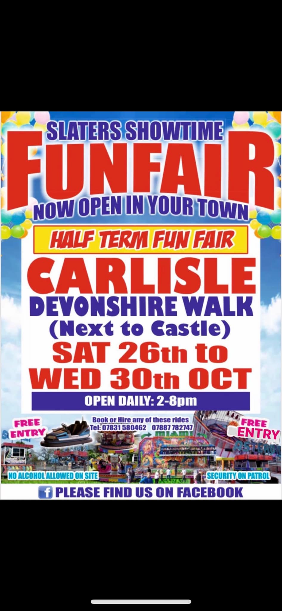 | 26th October | 30th October | CARLISLE | Devonshire Walk Car Park | Slaters | ?? | Poster |