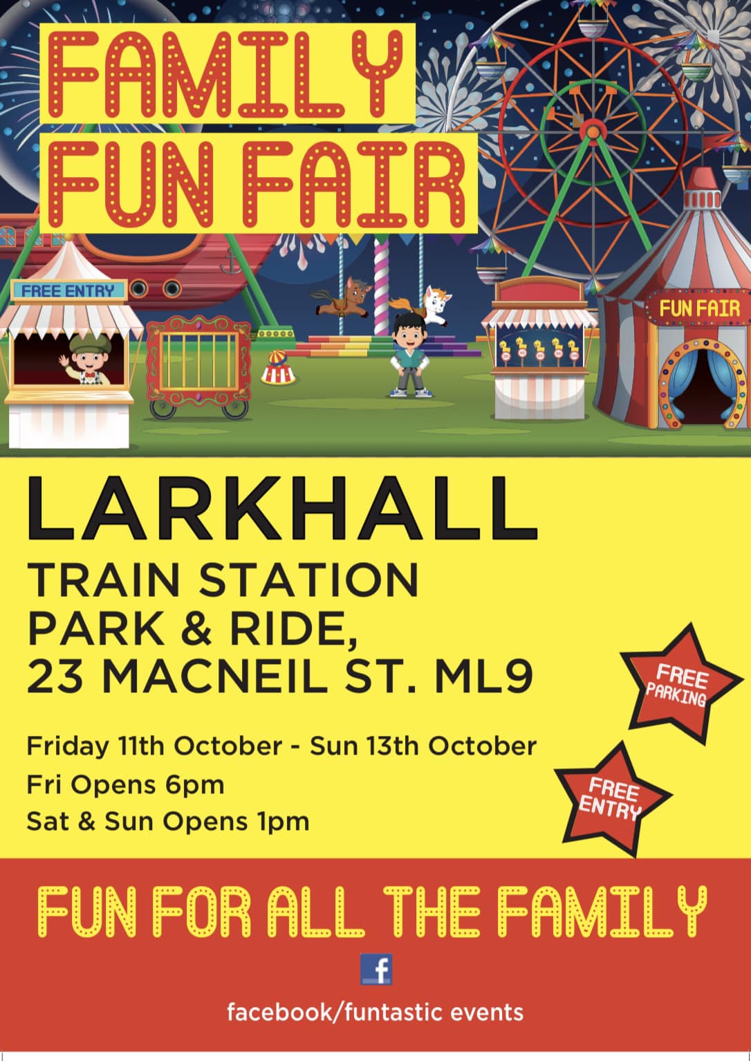 | 11th October | 13th October | LARKHALL | Train Station P&R | Funtastic Events | ?? | Poster |