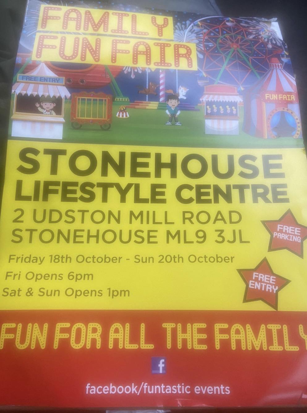 | 18th October | 20th October | STONEHOUSE | Lifestyle Centre | Funtastic Events | ML9 3JL | Poster |