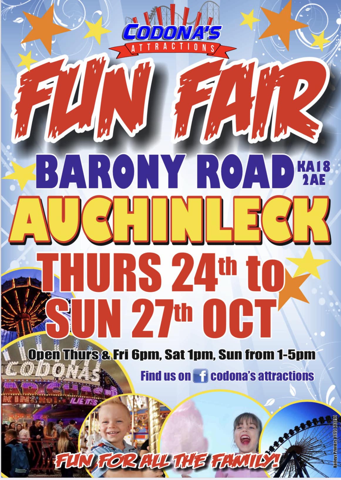 | 24th October | 27th October | AUCHINLECK | Barony Road | Justin Codona | KA18 2AE | Poster |